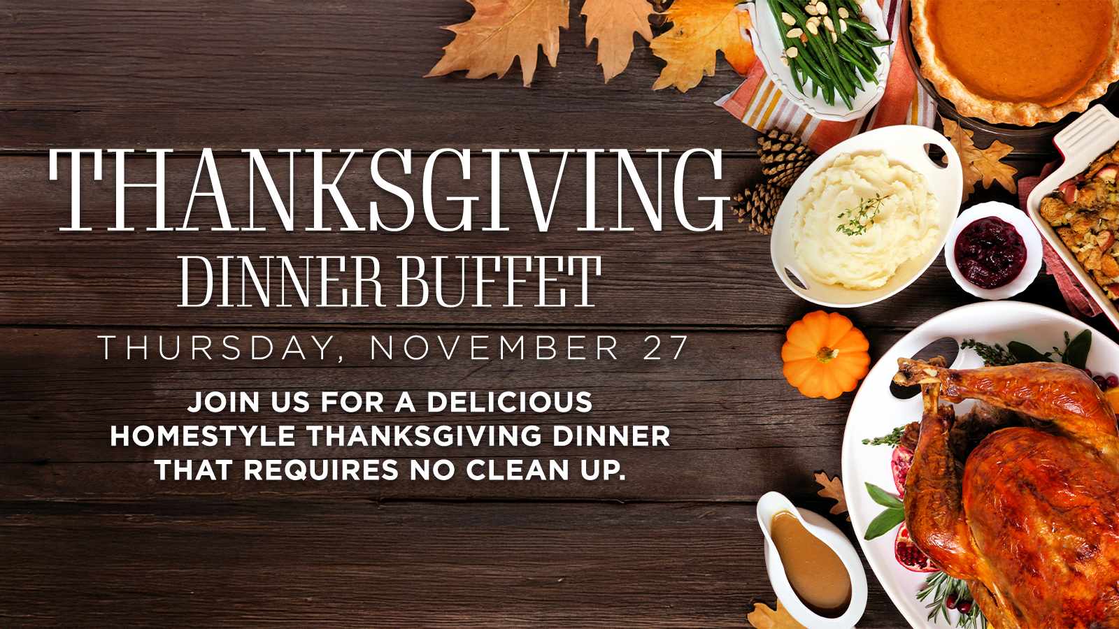 JOIN US FOR A DELICIOUS HOMESTYLE THANKSGIVING DINNER THAT REQUIRES NO CLEAN UP.