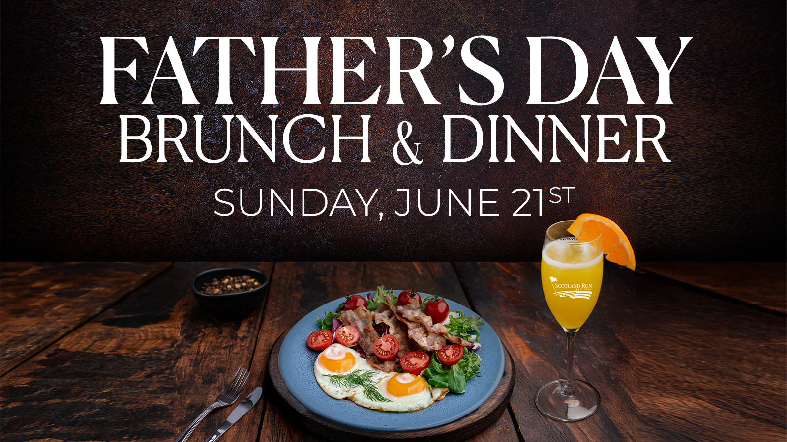 FeaturedFather's Day Sunday, June 21st Open To The Public Celebrate Father's Day with Scotland Run Golf Club! Members & Guests $50++ Adults Call 856-863-3737 X3 to make a reservation Non-members $60++ Adults | $25++ Children 3-12 | Free Under Three … Read More